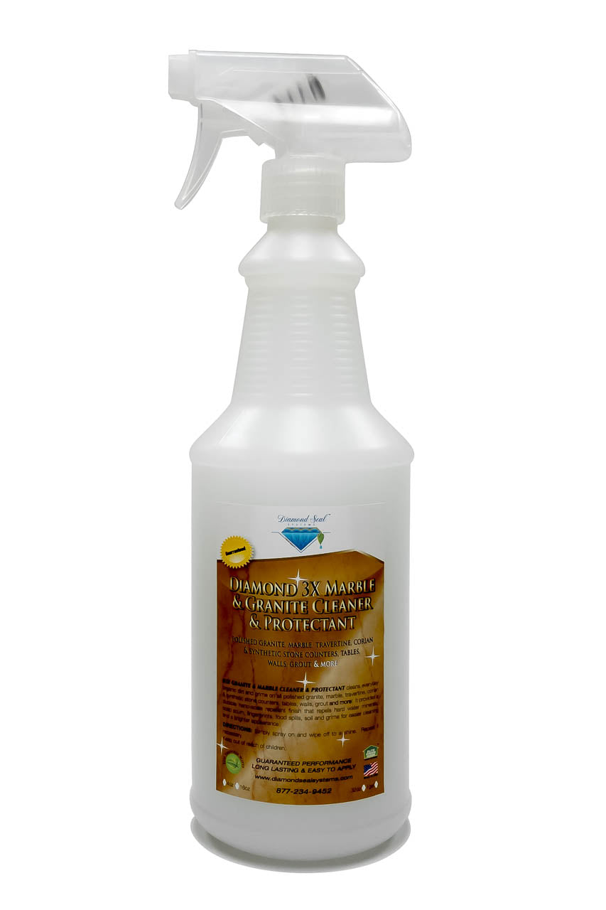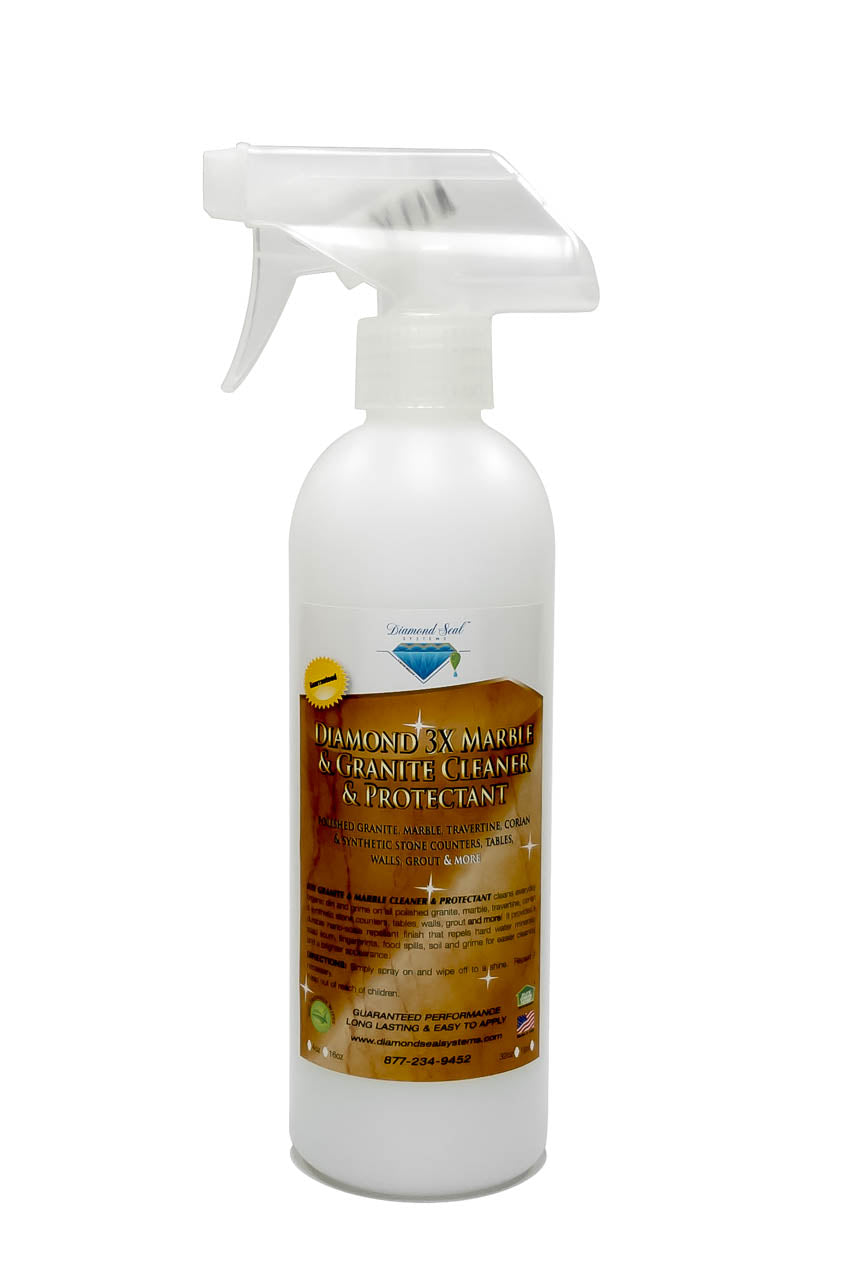 Diamond 3x Marble & Granite Cleaner stone cleaner is a water-based cleaner used to prepare the surface for Diamond Seal Systems sealing applications. The Stone Cleaner is also safe to use after the surface has been treated. It removes scuff marks, stains, grease, dirt and other impurities while conditioning stone surfaces.