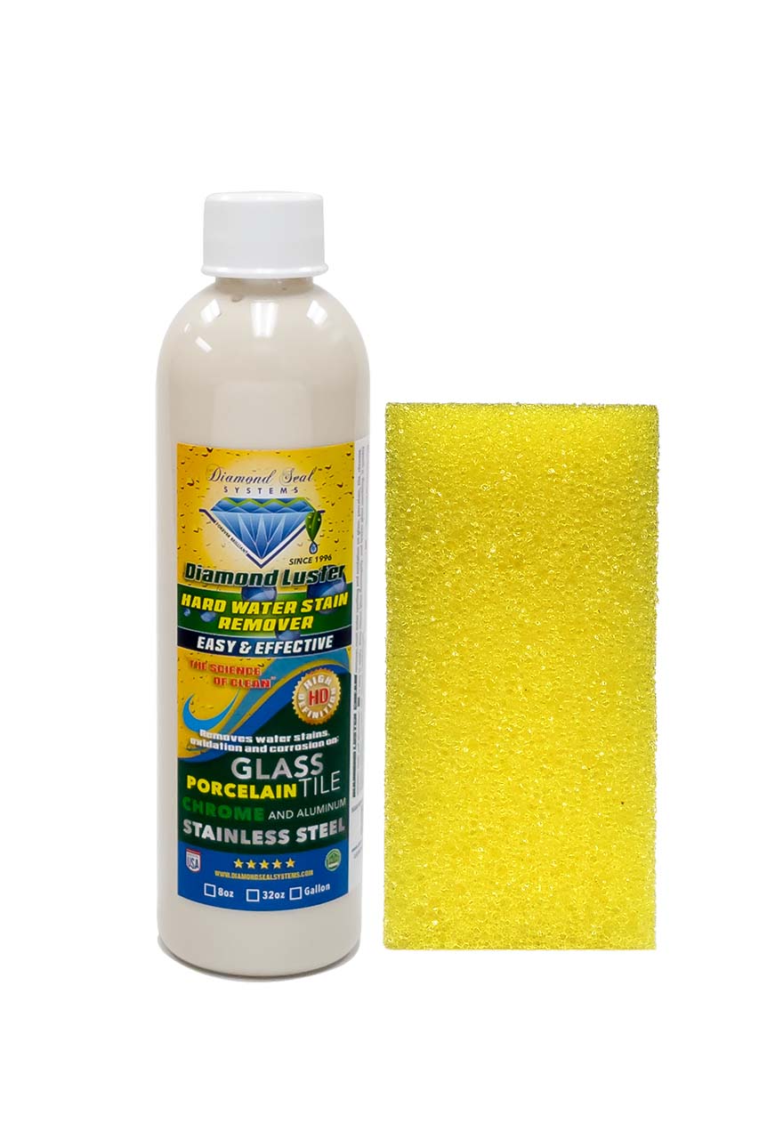 Diamond Luster Restoration Cream cleans water spots on glass, porcelain, tile, chrome, stainless steel and aluminum. Diamond Luster is a non-abrasive liquid designed to renew glass and metal. Once renewed, the surface can be treated with Diamond Seal Systems Protective Products to seal and protect the surface from further corrosion and oxidation.